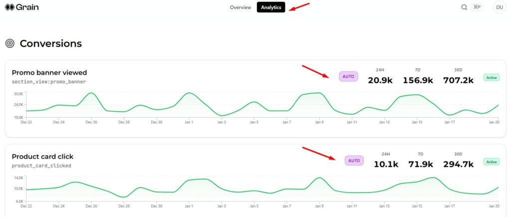 Grain solves this by combining AI-powered insights with raw data access. You can track user journeys, see what drives conversions, and ask questions in plain English. The best part? You don’t need to write code to track elements on your site.