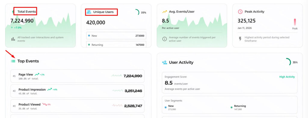 The left sidebar organizes everything into clear sections. Events, journeys, sessions, and settings are easy to find. Navigation feels natural after just a few minutes of use.